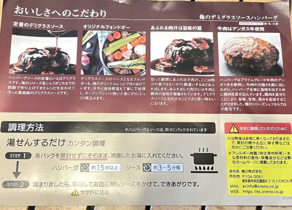 こちらもソースとハンバーグは別パッケージ。