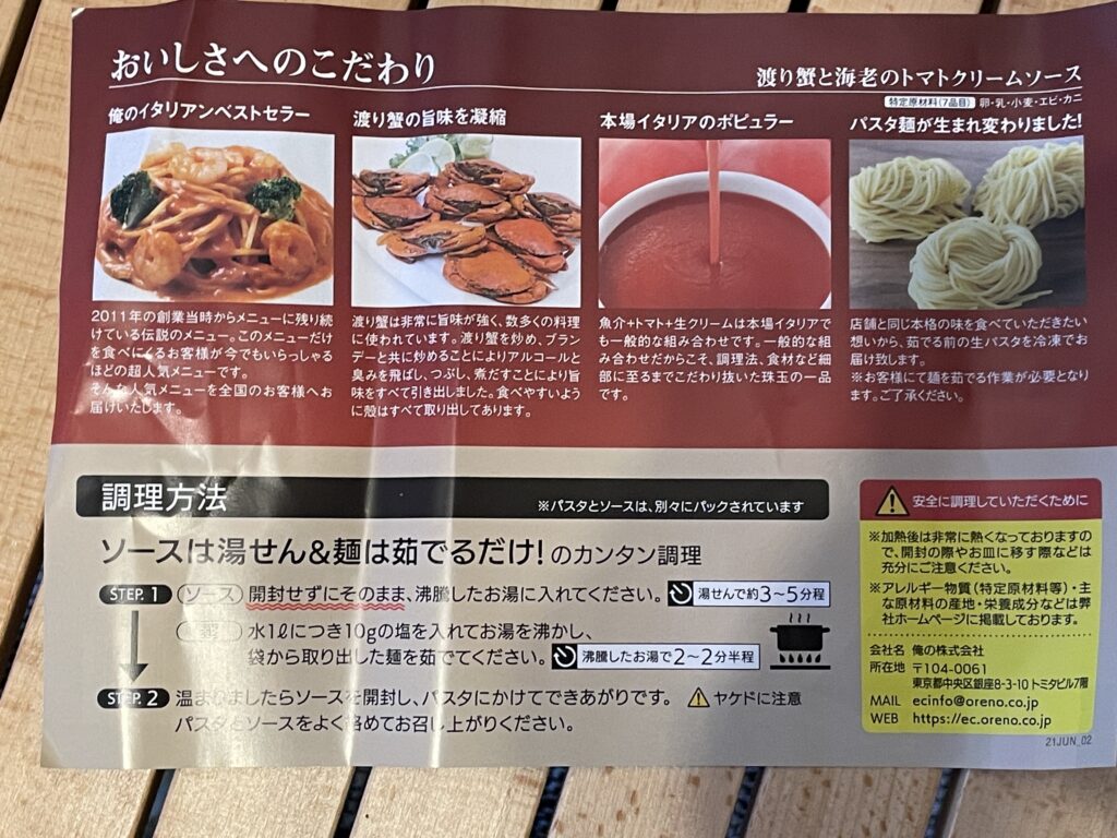 ソースとパスタは別々でパッケージングされてました。