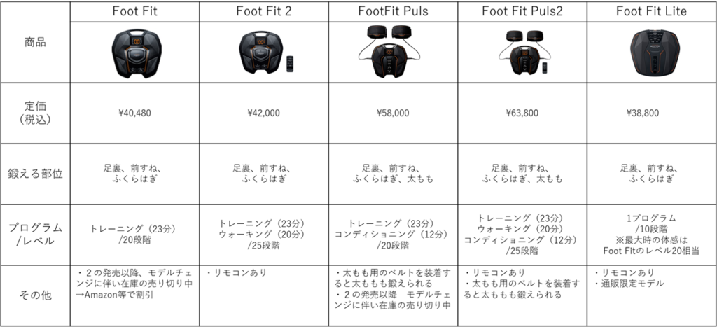 SIXPAD Foot Fitシリーズ商品比較(2022年6月12日時点)
