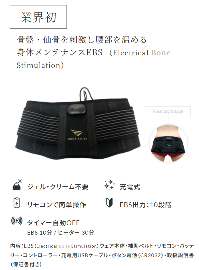 ちなみにこの商品、EBS(Electrical Bone Stimulation)という売り文句で腰痛等への効果を記載しております。