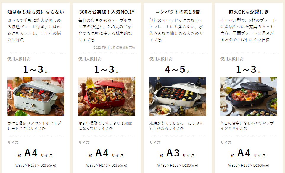中でもBRUNOのコンパクトホットプレートは、累計販売台数250万台の大ヒット商品です。