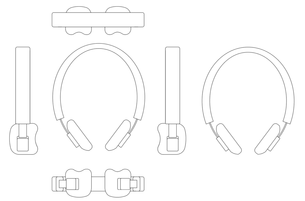 おそらく同一と目されるMTG社の意匠権の画像をもとに比べてみると、”同じヘッドホン型”といっても違いが多く散見されます。