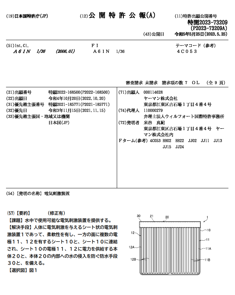 2023年5月25日付で公開された、特許出願情報にて、ヤーマン株式会社の新たなEMS機器の開発情報をキャッチしました。