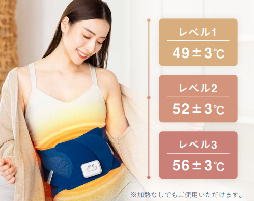 気分に合わせて使える3段階の温熱機能を搭載。腰回りを温めることで、身体全体もリラックスします。