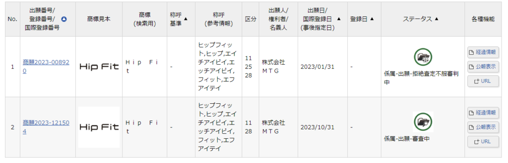 25類は、衣類分野ですので、お尻にフィットするという意味そのままでは、品質等表示でしかないため商標登録は難しいという所でしょうか。フォントに特徴的な点もあるので、主にその点で引き続き登録に向けて反論すると思われます。