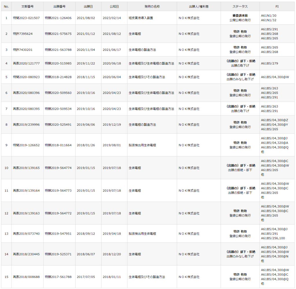 なお、NOK株式会社はここ数年生体用の電極開発に投資を継続的に行っている模様です。