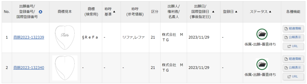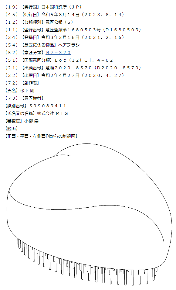 また、MTG社としては初の立体商標として、2件のブラシ商標が出願中となっています。