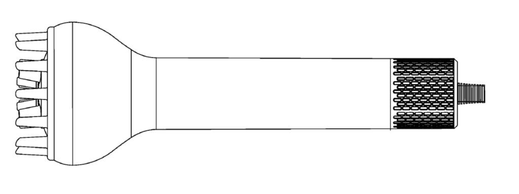 送風側はブラシ状の突起がついていることから、マッサージしながら髪を乾かせる構造になっているものと推定されます。