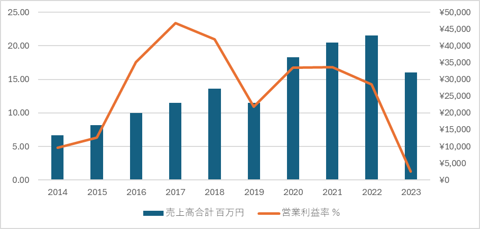 売上および利益率の推移を見ても、業績としては厳しい環境にさらされていると考えられる。