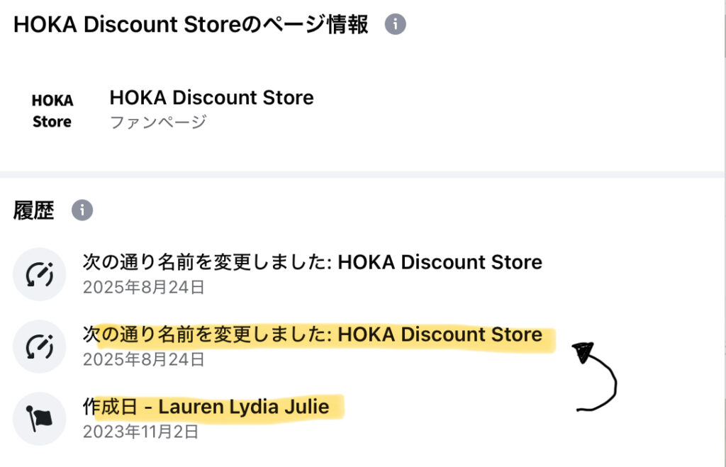 👉 実際の広告では、FacebookやInstagramに「HOKA Discount Store」などと表示され、購入ページへ誘導されていました。