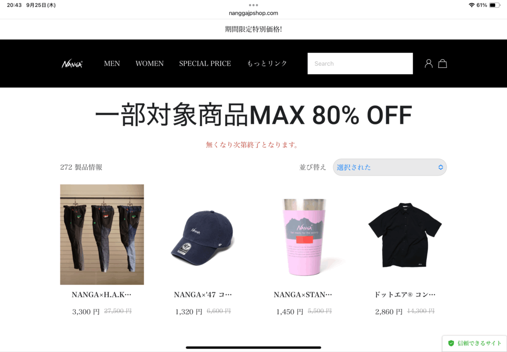 - 過剰な割引表示:「80% OFF」など極端に安い価格は赤信号。